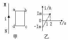 22、如右图甲所示:长直导线MN右侧的矩形线圈abcd与直导线位于同一平面内;当长直导线中电流发生如图乙中图线所示变化时,则线圈中感应电流与其受力情况为( )