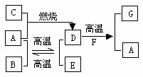 (12分)A、C、E、F是中学化学常见的单质,A是固体,C、E是无色无味的气体,D是黑色固体。G既能和烧碱溶液反应也能溶解于盐酸之中。这些物质之间有如图的转化关系。