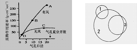 下图中表示在有风和无风的两种条件下,蒸腾速率与气孔大小之间的关系。在图中哪一点蒸腾作用与气孔大小无关