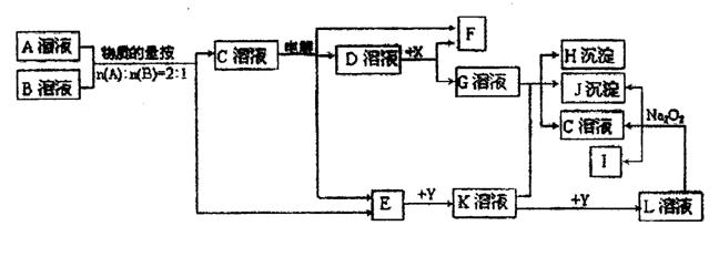 下图中A-L分别表示反应中的一种常见物质,E、F、I在通常状况下是气体单质,其中E为有刺激性气味的气体,X、Y是常见的金属单质,参加反应的水以及生成的水在图中已略去。