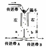 25.(22分)下图是某种静电分选器的原理示意图。两个竖直放置的平行金属板带有等量异号电荷,形成匀强电场。分选器漏斗的出口与两板上端处于同一高度,到两板距离相等。混合在一起的a、b两种颗粒从漏斗出口下落时,a种颗粒带上正电,b种颗粒带上负电。经分选电场后,a、b两种颗粒分别落到水平传送带A、B上。