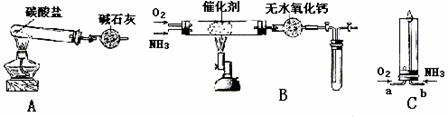 (1)用装置A制取纯净、干燥的氨气,大试管内碳酸盐的化学式是 ;碱石灰的作用是 。