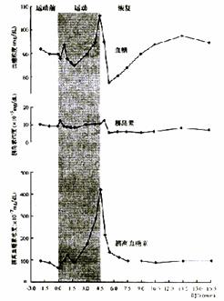 (1)1.8~4.5min内,血糖的变化是 ,这种变化满足了运动时机体对 的需求。该时间段血液中迅速增加的激素是 ,与此激素起协同作用的激素是 。