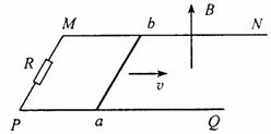 (7分)如图所示,水平面上有两根相距0.5m的足够长的平行金属导轨MN和PQ,它们的电阻可忽略不计,在M和P之间接有阻值为R的定值电阻。导体棒ab长l=0.5m,其电阻为r,与导轨接触良好。整个装置处于方向竖直向上的匀强磁场中,磁感应强度B=0.4T。现使ab以v=10m/s的速度向右做匀速运动。