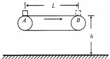 (9分)如图所示为车站使用的水平传送带装置的示意图,绷紧的传送带始终保持3.0m/s的恒定速率运行,传送带的水平部分AB距水平地面的高度为h=0.45m。现有一行李包(可视为质点)由A端被传送到B端,且传送到B端时没有被及时取下,行李包从B端水平抛出,不计空气阻力,g取10m/s2。