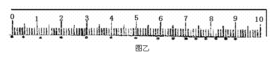 (1)图乙为打点计时器在纸带上打出的点,现用一直尺放于其旁对其进行测量,从图中