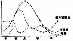4.下图表示的是硅藻和一些非生物因素季节的变化,数据来自北温带海洋的上层。以下哪项对图的解释是正确的( )