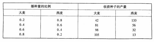3.在温室中混合播种不同比例的大麦和燕麦,结果如下表: