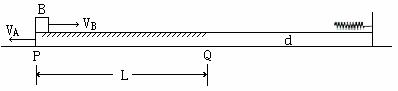 (20分)在光滑的水平面上有一质量M=2kg的木板A,其右端挡板上固定一根轻质弹簧,在靠近木板左端的P处有一大小忽略不计质量m=2kg的滑块B。木板上Q处的左侧粗糙,右侧光滑。且PQ间距离L=2m,如图所示。某时刻木板A以
