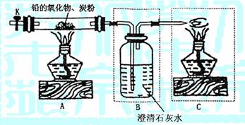 (2)在A中硬质玻璃管内装入该铅的氧化物和炭粉混合物,B中洗气瓶内装入足量澄