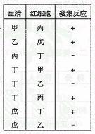 集试验(即将少量红细胞与血清混合,发生凝集为“+”,不