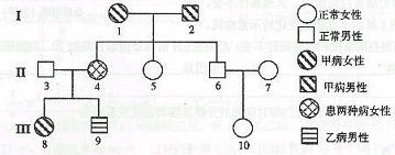 37.(13分)下图是具有两种遗传病的家庭系谱图,设甲病显性基因为A,隐性基因为a;乙病是性基因为B,隐性基因为b。若II-7为纯合体,请据图回答: