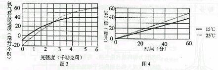 (3)图3表示某绿色植物光合作用中光强度和氧气释放速度的关系。图4表示该植物在不同温度(
