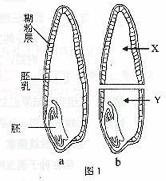 实验:供先材料--表面消毒的干燥大麦种子若干粒,将种子横切成两部分(X部分无胚,Y部分有胚),如图1(b)所示。