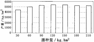 (6分)过去人们以为作物播种密度越大,产量越高。在保证营养需要的情况下,有人对小麦的产量与播种量的关系进行了研究,结果如下图所示。