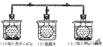 14.如下图所示,三个烧瓶中分别充满NO2气体并分别放置在盛有下列物质的烧杯中。已知无水CaCl2溶于水时放出的能量多于吸收的能量,而NH4Cl晶体溶于水时吸收的能量少于放出的能量,(2)中不加任何物质,下列叙述不正确的是