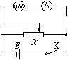 ⑵实验室内有一电压表〇mV ,量程为150mV,内阻约为150Ω。现要将其改装成量程为10mA的电流表,并进行校准。为此,实验室提供如下器材:干电池E(电动势为1.5V),电阻箱R,滑线变阻器R′,电流表〇A (有1.5mA,15mA与150mA三个量程)及开关K。