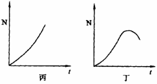 7.下图中甲、乙、丙、丁四条曲线为在①②③④四种条件下,细菌种群的生长曲线,这四