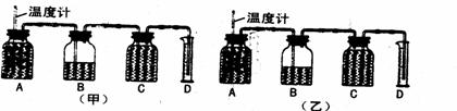 (a)甲、乙两同学分别组装了如图所示两套实验装置,图中瓶A是产生沼气的发酵瓶,瓶B 是洗气瓶(内盛NaOH溶液),瓶C是储气瓶(瓶内盛满水),用于收集甲烷,量筒D用于集水。你认为应该选哪一套装置(填“甲”或“乙”)?_____________。