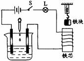 本题通过物理学中的电流强度与亮度关系及电磁铁磁性强弱与电流强度关系,这是学科内的综合;而电流强度大小受电解质浓度的影响。