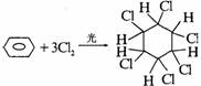 4.化肥农药的使用导致人类癌症发病率的增加,如DDT、六六六粉、二二三乳剂的使用,其中六六六粉在二十年代是广泛使用的一种农药,它的合成是由某一有机物与一种卤素单质通过加成反应制得的,写出反应的化学方程式。