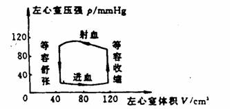 3.若测得该同学跳绳时心跳每分钟约100次,每次血液循环中,左心室压强与容积变化的p-V曲线如图所示,右心室对肺动脉的压强约为左心室的1/5。设每次心室收缩时射出血量约70rnl,试估算心脏工作的平均功率。
