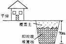 1986年英国德尔比郡的一栋平房被一起爆炸炸成碎片!科学调查发现,这一爆炸是由甲烷气体引起的,甲烷气体来自平房附近的一旧垃圾堆置场。其中堆埋了以下物质,建筑垃圾:水泥、砖碴、玻璃、木头、钢铁;生活垃圾:植物性垃圾、塑料等。如右图示: