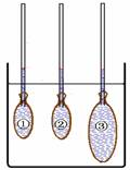 下图示①、②、③为三个用半透膜制成的小袋,①和②半透膜小袋的体积相同,③袋的体积较大;三个小袋的上端分别接上口径相同的细玻璃管。