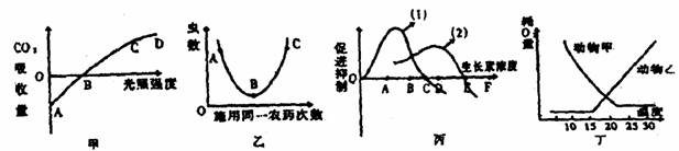 C.生产上用一定浓度生长素类似物除去单子叶植物中的双子叶杂草,丙图中(1)表示单子叶植物
