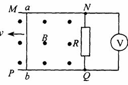 的导体棒ab的电阻r=1.0Ω,接在NQ间的电阻R=4.0g,电压表为理想电表,其余电阻