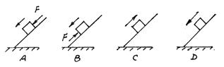 16、下列四个选项的图中,木块均在固定的斜面上运动,其中图A、B、C中的斜面是光滑的,图D中的斜面是粗糙的,图A、B中的F为木块所受的外力,方向如图中箭头所示,图A、B、D中的木块向下运动,图C中的木块向上运动,在这四个图所示的运动过程中机械能守恒的是