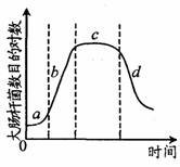 B.用带有人胰岛素基因的大肠杆菌进行发酵时,可在右图中c所示时期得到大量的人胰岛素