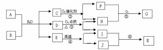 28.(13分)物质A-D相互关系如下图,其中A为酸式盐,B为某二价主族金属的碳化物,等物质的量A、B与适量水充分混合能恰好完全反应,常温常压下,C、D均为气态,反应④和反应⑤分别是工业上生产化合物J和化合物G的重要方法