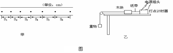 (Ⅰ).(8分)在探究加速度与物体质量、物体受力的关系实验中,实验装置如图乙所示:一木块放在水平光滑长木板上,左侧拴有一不可伸长的细软线,跨过固定在木板边缘的滑轮与一重物相连,重物的质量为m .木块右侧与穿过打点计时器的纸带相连,在重物牵引下,木块在木板上向左做匀加速运动.图甲给出了打点计时器在纸带上打出的一些连续的点,它们之间的距离分别为S1、S2、S3、S4、S5、S6,打点计时器所用交流电周期为T. 根据给以上数据求:
