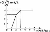 + Cu =Cu2+ +2Fe2+ 。现有含有Fe(NO3)3、Cu(NO3)2、HNO3的稀溶液,若向其中逐渐加入铁粉,且Fe与稀硝酸反应的还原产物仅为NO。,溶液中Fe2+ 浓度和加入铁粉的物质的量之间关系如下图所示。则稀溶液中Fe(NO3)3、Cu(NO3)2、HNO3物质的量浓度之比为( )