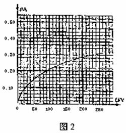 3.如果根据测量结果作出的伏安特性曲线如图2所示,试根据图线确定,把两个完全相同的“220V40W”白炽电灯串联在220V交流电源的火线与零线间,这两只电灯消耗的总功率是_________。