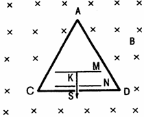 30.(19分)如图所示,正三角形ACD是一用绝缘材料制成的固定柜架,边长为L,在框架外是范围足够宽的匀强磁场,磁感应强度为B,方向垂直于纸面向里,ACD可视为磁场的理想内边界。在框架内有一对带电平行极板M、N,M板的中点K处有一粒子源,能够产生速度为零、质量为m、电量为q的带正电的粒子,粒子重力不计。带电粒子经两极板间的电场加速后从CD边中心的小孔S垂直于CD边射入磁场。若这些粒子与框架的碰撞为弹性碰撞,且每一次碰撞时速度方向均垂直于被碰的边框。要使粒子在最短的时间内回到小孔S,求: