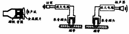 19.动圈式话筒和磁带录音机都应用了电磁感应现象,左下图是话筒原理图,右下图是录音机的录音、放音原理图,由图可知: