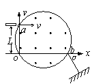 (20分)一细束相同粒子组成的粒子流,每个粒子电荷量为+q,重力不计,每个粒子的速率都相同。粒子流定向移动的等效电流为I。当该粒子流由图中坐标为(0,L)的a点平行与x轴方向射入磁感应强度为B的圆形匀强磁场区后,恰好从x轴上的b点射出磁场,射出时速度方向与x轴成α=60°,所有粒子最后垂直打在靶上,并把动能全部传给靶。若测得靶上每秒钟内获得的能量为E,求:⑴该粒子在磁场中做匀速圆周运动的轨道半径r。⑵每秒中打在靶上的粒子个数N。⑶该粒子束中每个粒子的质量m。