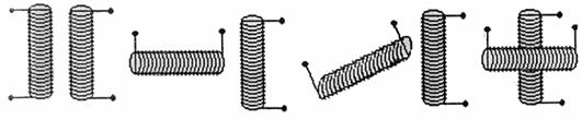 17.在无线电仪器中,常需要在距离较近处安装两个线圈,并要求当一个线圈中有电流变化时,对另一个线圈中的电流的影响尽量小。则图中两个线圈的相对安装位置最符合该要求的是 ( )
