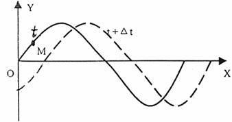 21.如图所示一列向右传播的横波在t时刻和t+△t时刻的波动图象。在△t时间内,就图中的某一质点M,下列表述正确的是 ( )