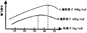 3.下图表示在土壤中施肥阴离子数量不等的两种条件下,谷物的产量和用于施肥的阳离子数量之间的关系曲线图。据图判断,土壤在用20ks/hm2阳离子和20kg/ hm2阴离子施肥时,限制谷物产量的因素:( )