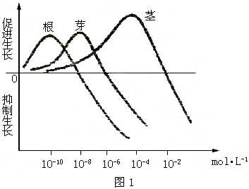 3.经实验检测出某一植株的不同器官对不同生长素浓度的反应如图1所示,横坐标表示生长素物质的量浓度。根据实验结果,可以获得的结论之一是 ( )