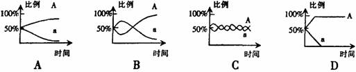 2. 在某动物种群中,假如基因型为AA的个体占25%,Aa占50%,aa占25%。这三种基因型的个体在某一环境中的生存能力强弱表现为:AA=Aa>aa。下图中比较准确地表示A和a基因在长期的选择过程中比例变化情况的是