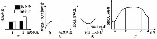 C.由丙图可知,含DNA的黏稠物析出量不再增加时,溶液中NaCl的物质的量浓度相当于0.14 mol·L-1
