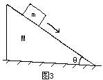 如图3所示,斜面体质量为M,倾角为θ,置于水平地面上,当质量为m的小木块沿斜面体的光滑斜面自由下滑时,斜面体仍静止不动。则[ ]