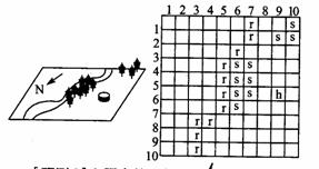 下图是一幅具有林木、河流和房屋的景观地图,右下图是根据左下图而建立的空间数据模型。据此回答下面57-58题。