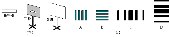 某同学使用激光器作光源,在不透光的挡板上开一条缝宽为0.05mm的窄缝,进行光的衍射实验,如图甲所示.则他在光屏上看到的条纹是下面乙图中的哪个?