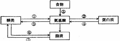 (二)(4分)下图为人体三大营养物质代谢示意图,据图回答问题: