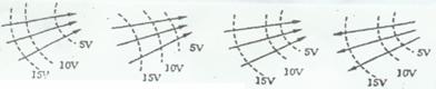 10.如图所示是点电荷周围电场的电场线和等势面的分布图,实线为电场线,虚线为等势面,那么能正确反映电场线与等势面关系的 ( )
